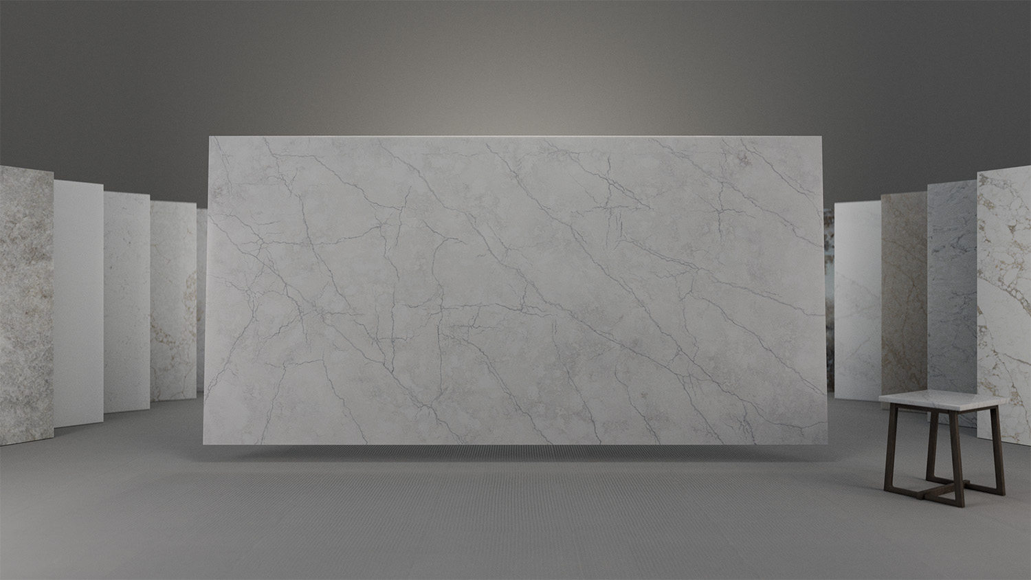 A warmer, welcoming grey palette, with hints of texture in its foundation. Echoing an architectural, modern style while retaining the elegance of natural stone. It echoes architectural applications with shades of concrete grey and subtle hints of texture within. Exemplifying modern style, with the elegance of natural stone.