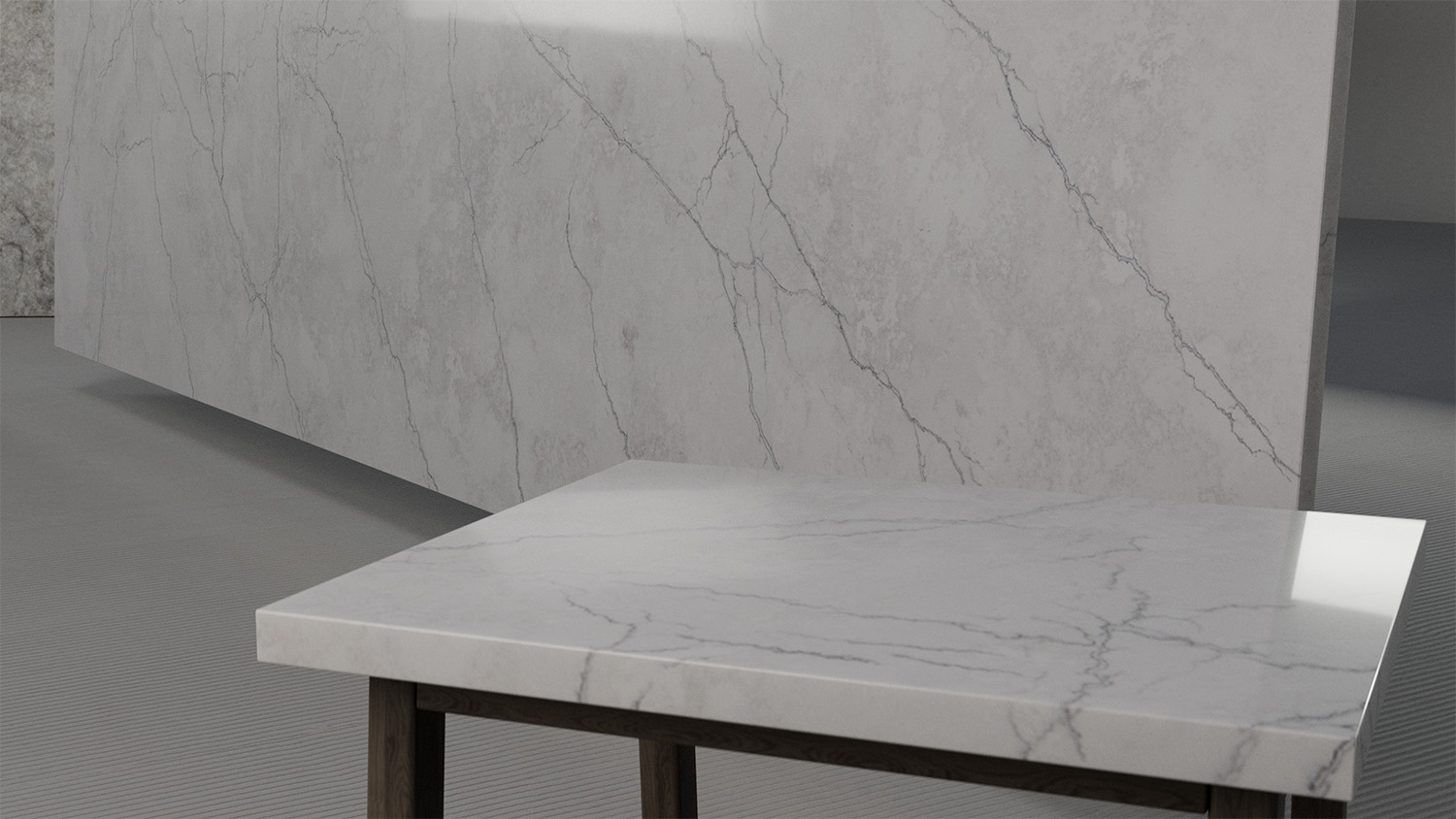 Combining delicately thin veins branching through its physical mass, with an architectural feel, this is a versatile surface that is able to complement a wide range of materials.