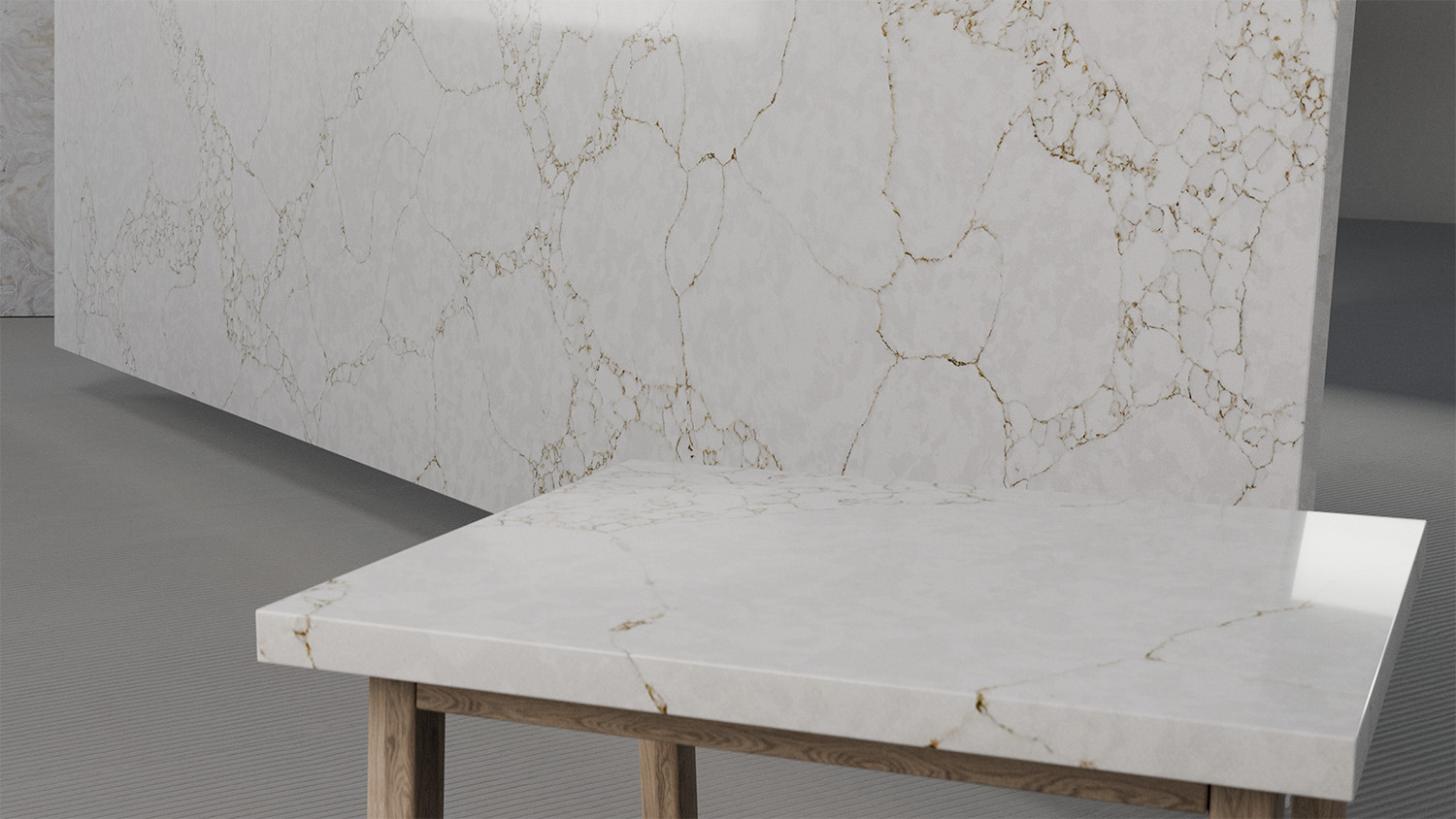 Lavishly soft and smooth golden alabaster base colour with elements of terrazzo echoed through delicate veining. Sublime detail stirred into a calm, soothing plane, gives this surface a wholesome character that is easy to love.